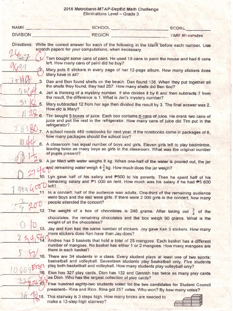 Math worksheets for grade 3 deped